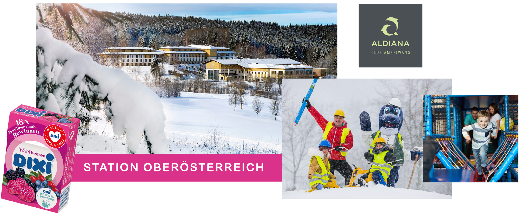 Gewinne 7 Nächte Familienurlaub für 2 Erwachsene und 2 Kinder im ALDIANA Club Ampflwang und genieße Urlaub für die wirklich gaaanze Familie.